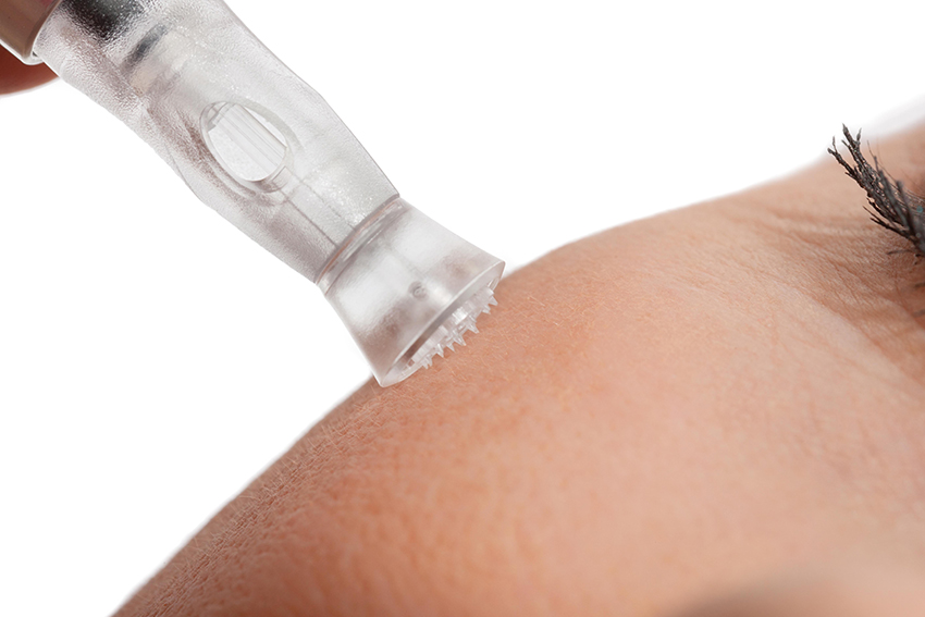 Beim Microneedling wird durch ultrafeine MESO-Spitzen völlig schmerzfrei der Selbstheilungsprozess der Haut aktiviert. Die unteren Hautschichten reparieren die verletzten Zellen und bilden neues Kollagen. Schon nach der ersten Anwendung zeigt sich ein aufgepolstertes Hautbild. Nach mehreren Sitzungen weist die Haut eine grundlegende Straffung und Regeneration auf.